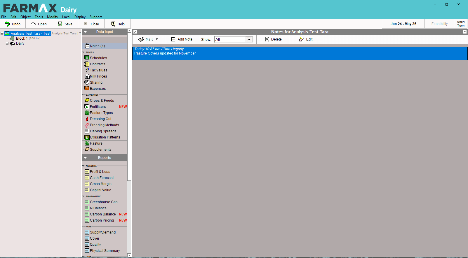 Record notes in FARMAX by going to the farm-level and Notes screen.